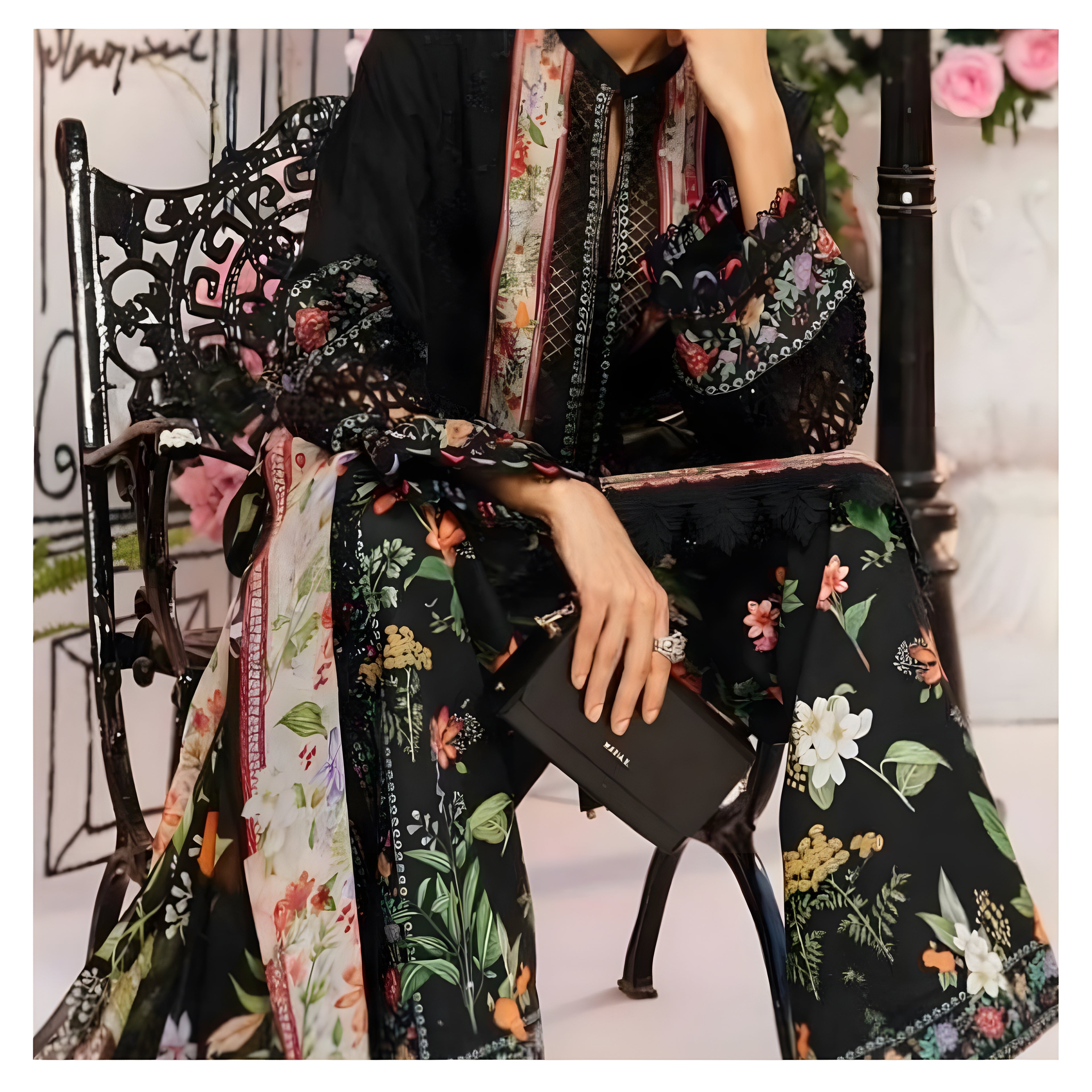 3 PIECE UNSTICHED EMBROIDERED LAWN SUIT - Maria B